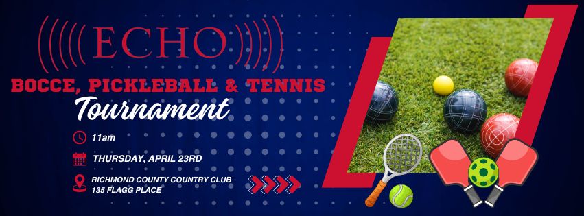 You’re invited to join ECHO on Thursday, April 23rd (rain date April 30th) at 11am at Richmond County Country Club, 135 Flagg Place, for our Bocce Ball Tournament & Fundraiser! Please use our online box office below to register to play in the event and/or purchase sponsorship!